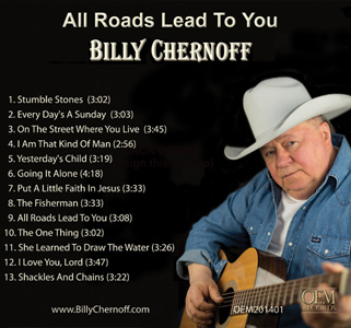 Over the last nine months Billy has been steadfastly writing and recording his new album and is pleased to announce the release of "All Roads Lead To You". Thirteen new selections; some self-penned, and some co-written with seasoned veterans such as Carl Walden, Glenn Douglas Tubb and Dottie Snow Tubb, and one by long-time friend Buzz Rabin. A new production crew and techniques melded with Billy's sincere vocal styling opened a door to a 'new' old sound. |